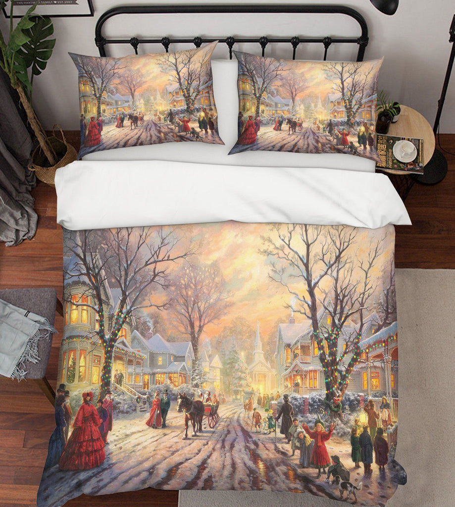 3D Christmas Sunset Junction 4 Bed Pillowcases Quilt