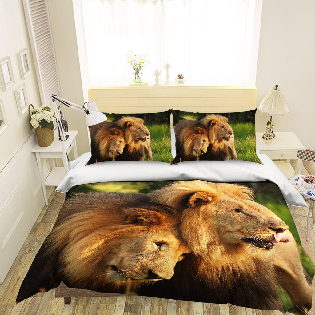3D Couple Lion 134 Bed Pillowcases Quilt