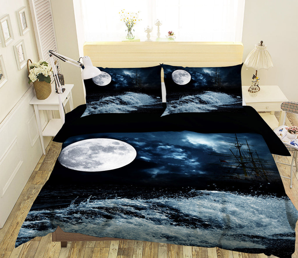 3D Night Moon Sea 060 Bed Pillowcases Quilt