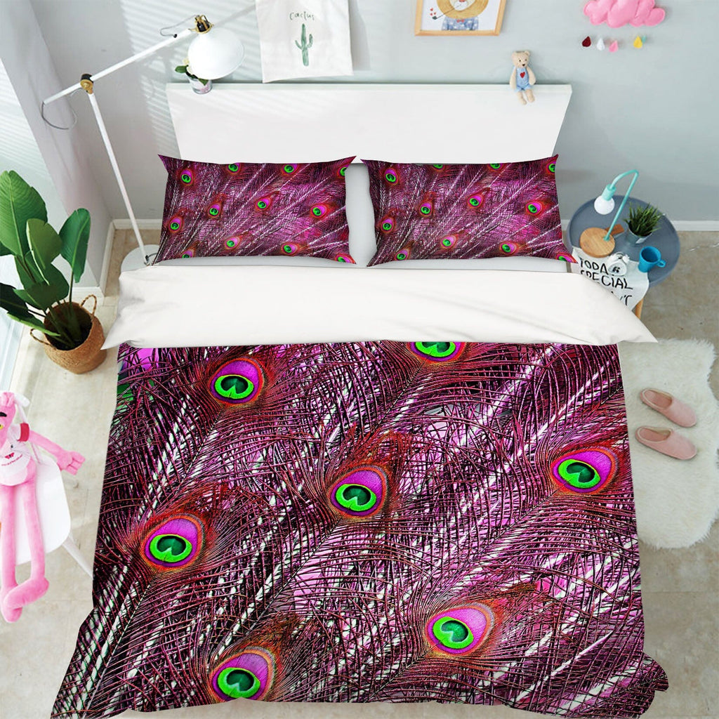 3D Peacock Feather 1921 Bed Pillowcases Quilt