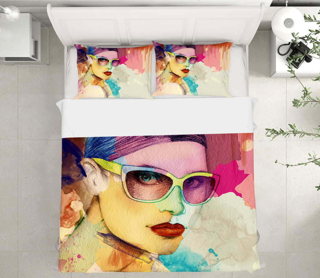 3D Sunglasses Model Girl 356 Bed Pillowcases Quilt