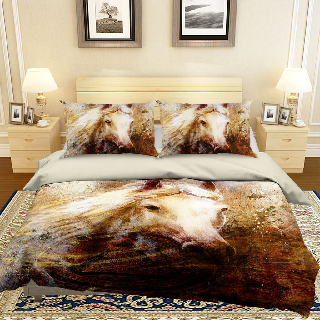 3D White Horse 116 Bed Pillowcases Quilt