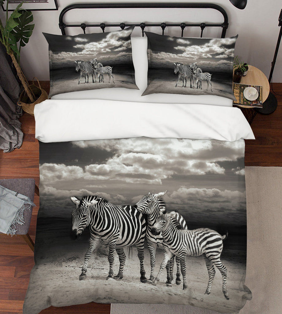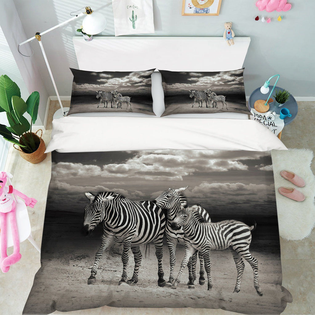 3D Zebra Family 2015 Bed Pillowcases Quilt