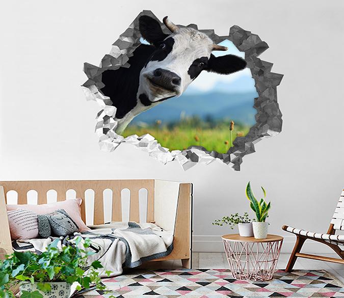 3D Funny Cow 187 Broken Wall Murals