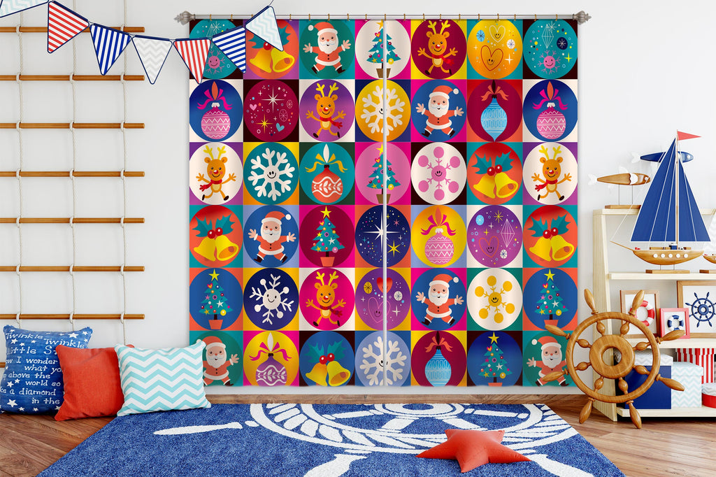 3D Colorful Circle Snowflake Santa 52026 Christmas Curtains Drapes Xmas