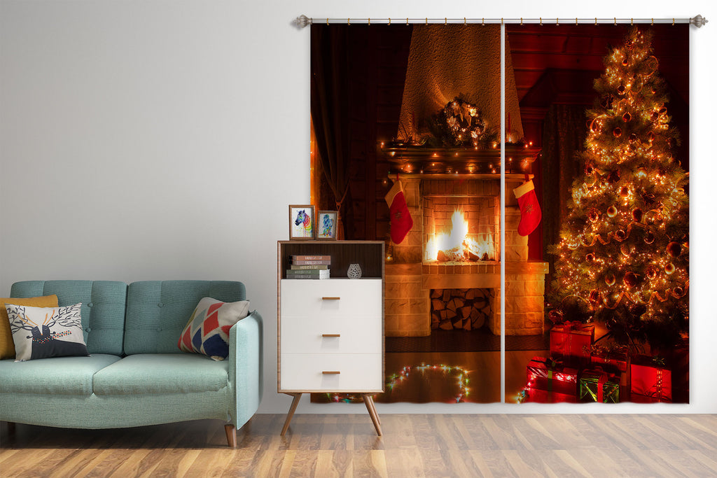 3D Fireplace Tree Sofa 52088 Christmas Curtains Drapes Xmas Sinsin