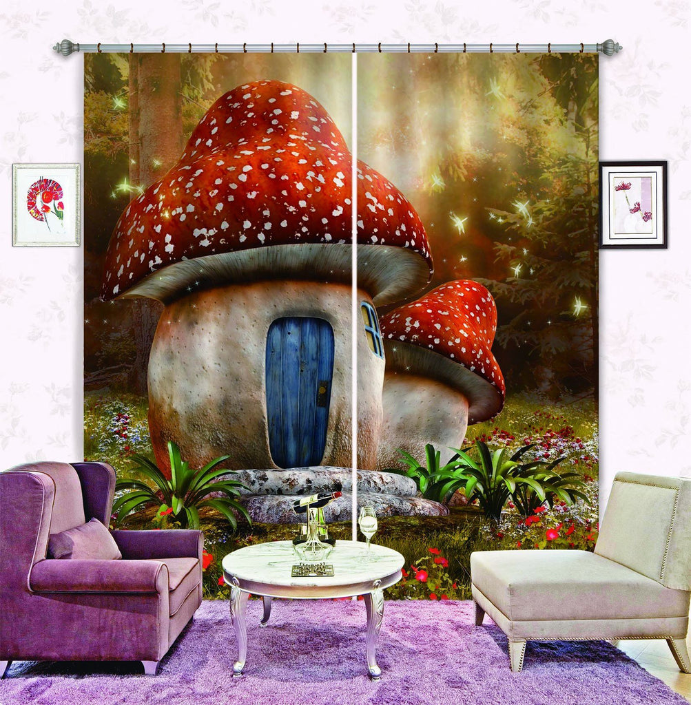 3D Lovely Mushroom Houses 754 Curtains Drapes