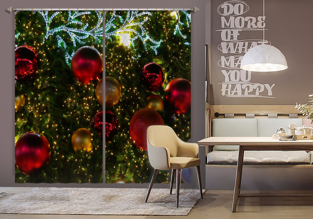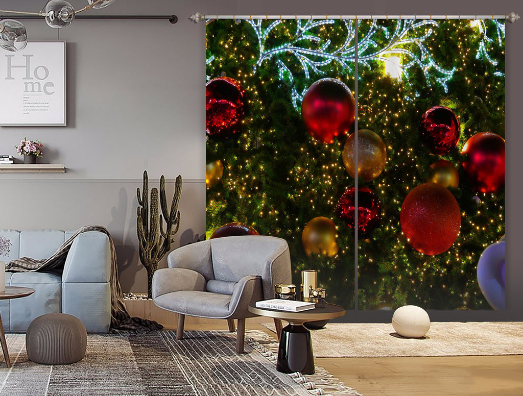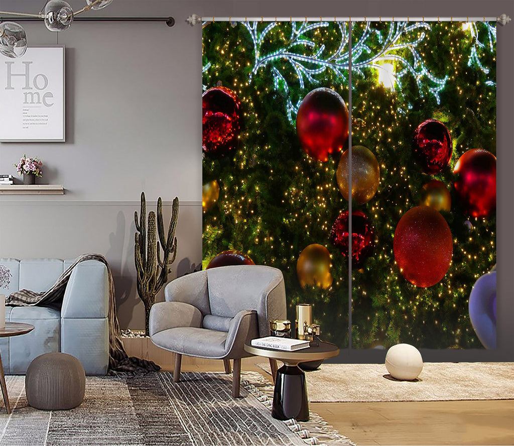 3D Red Golden Ball 52053 Christmas Curtains Drapes Xmas Sinsin