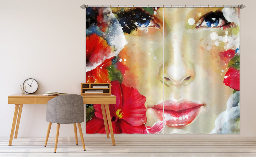 3D Red Lips Girl 764 Curtains Drapes Dai