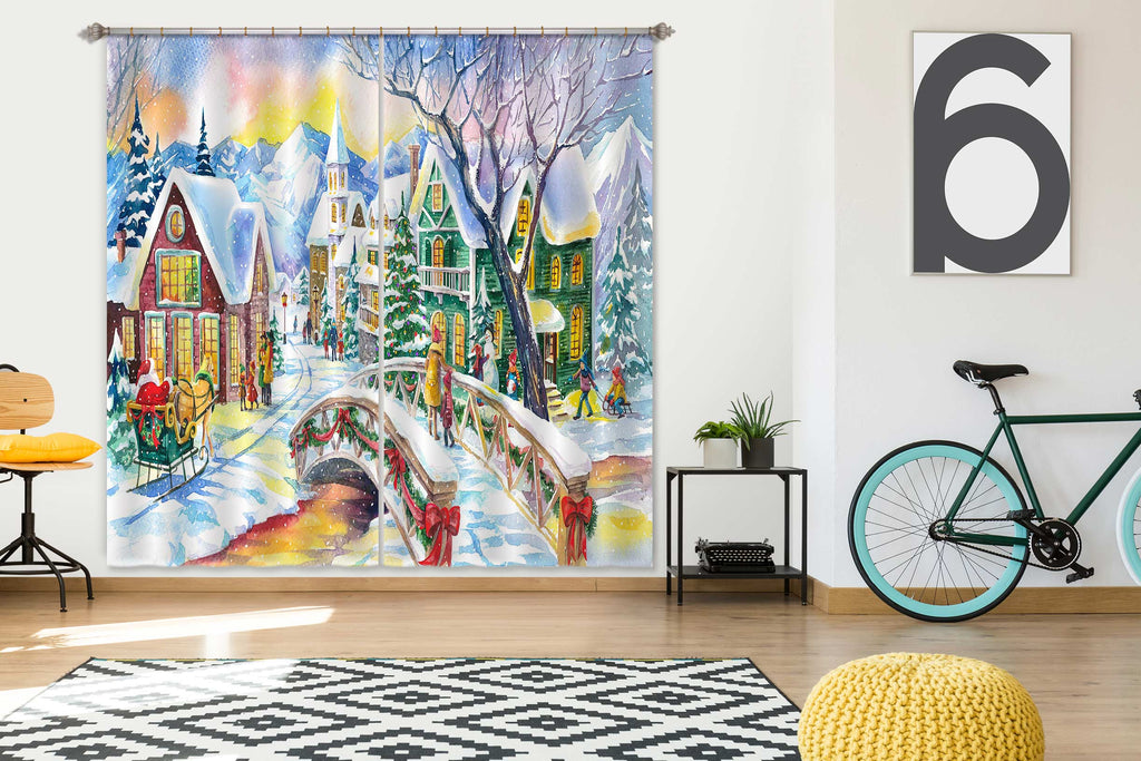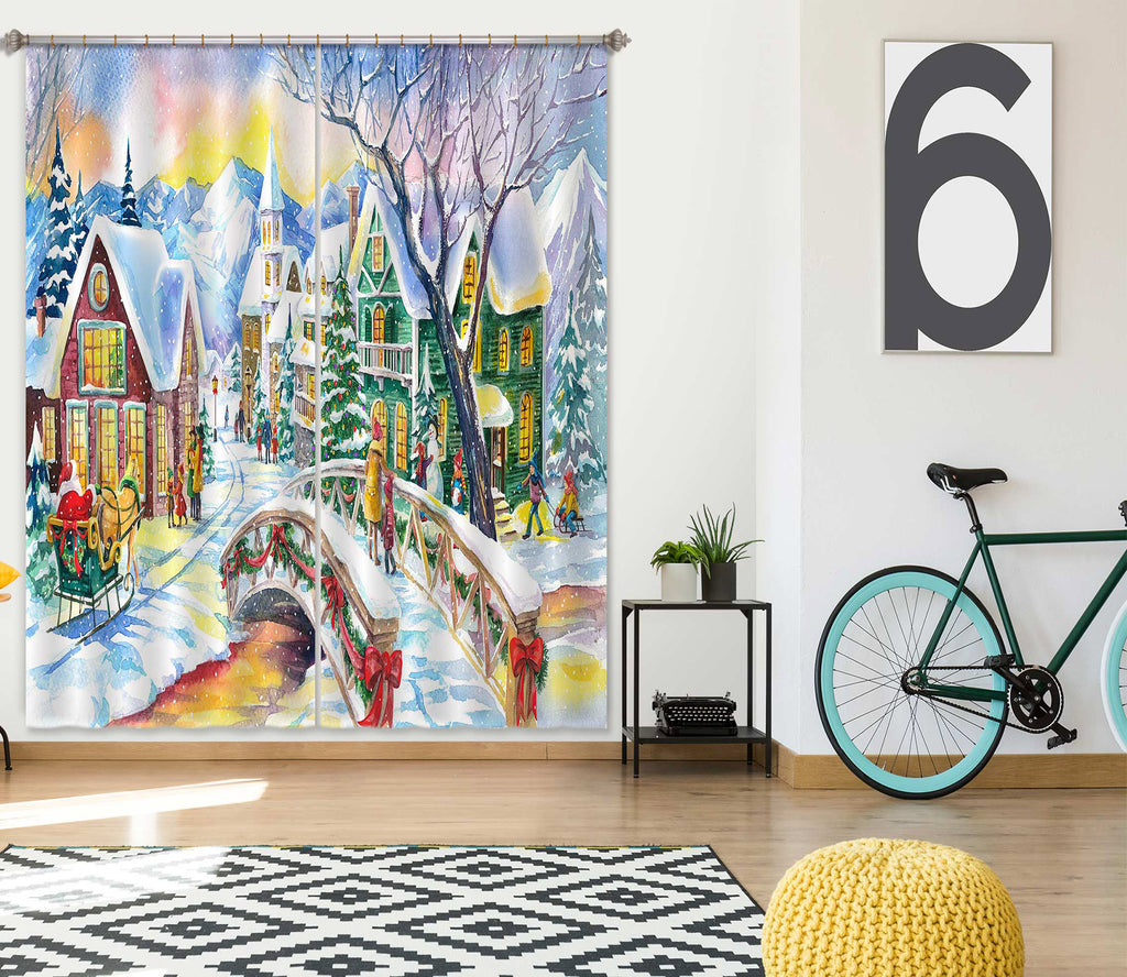 3D Snow Houses 52081 Christmas Curtains Drapes Xmas Sinsin