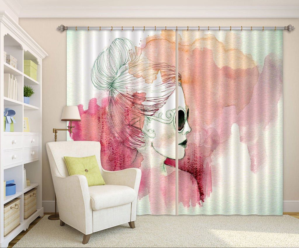 3D Watercolor Woman 24 Curtains Drapes