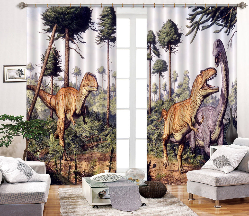 3D Forest Dinosaur Battle 170 Curtains Drapes