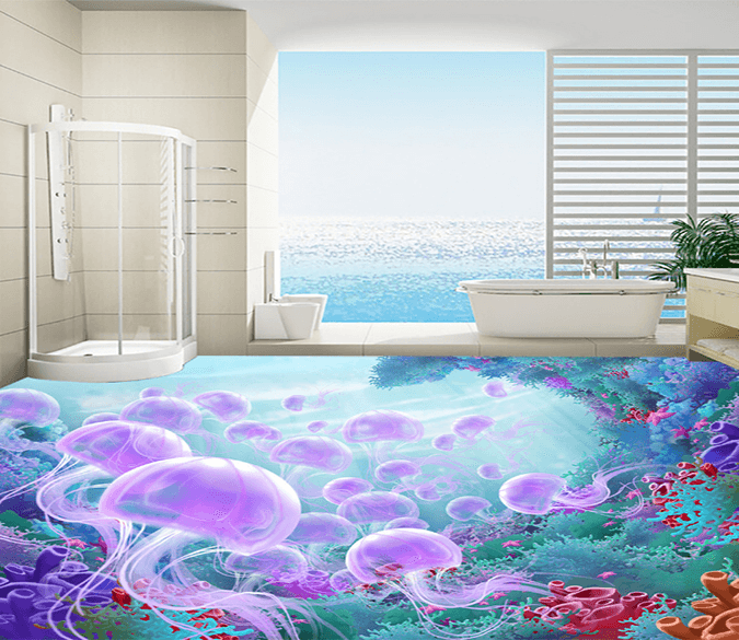 3D Purple Jellyfish 130 Floor Mural