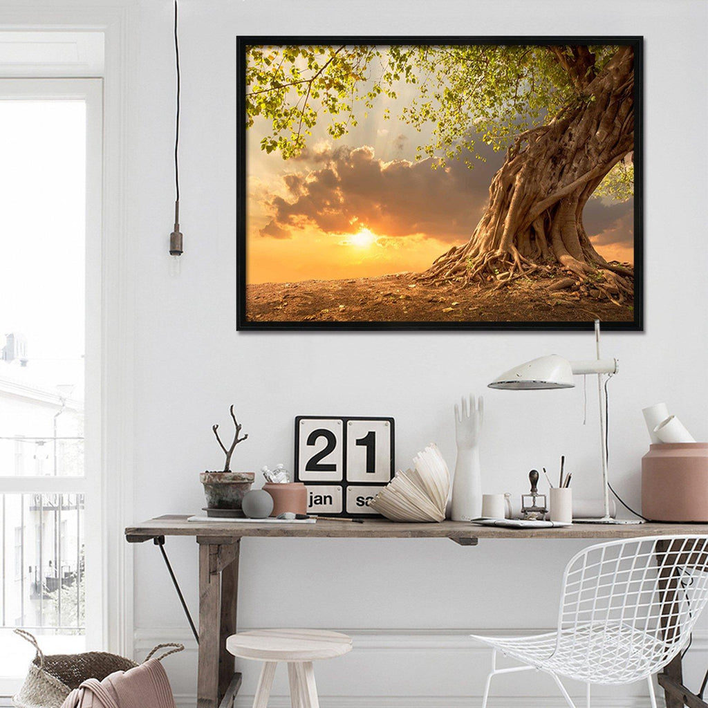 3D Big Tree Sunset 196 Fake Framed Print Painting