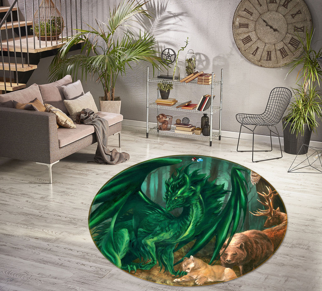 3D Animal Dragon 8385 Ruth Thompson Rug Round Non Slip Rug Mat Amy