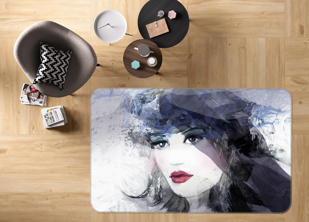 3D Black Hat Girl 1002 Non Slip Rug Mat