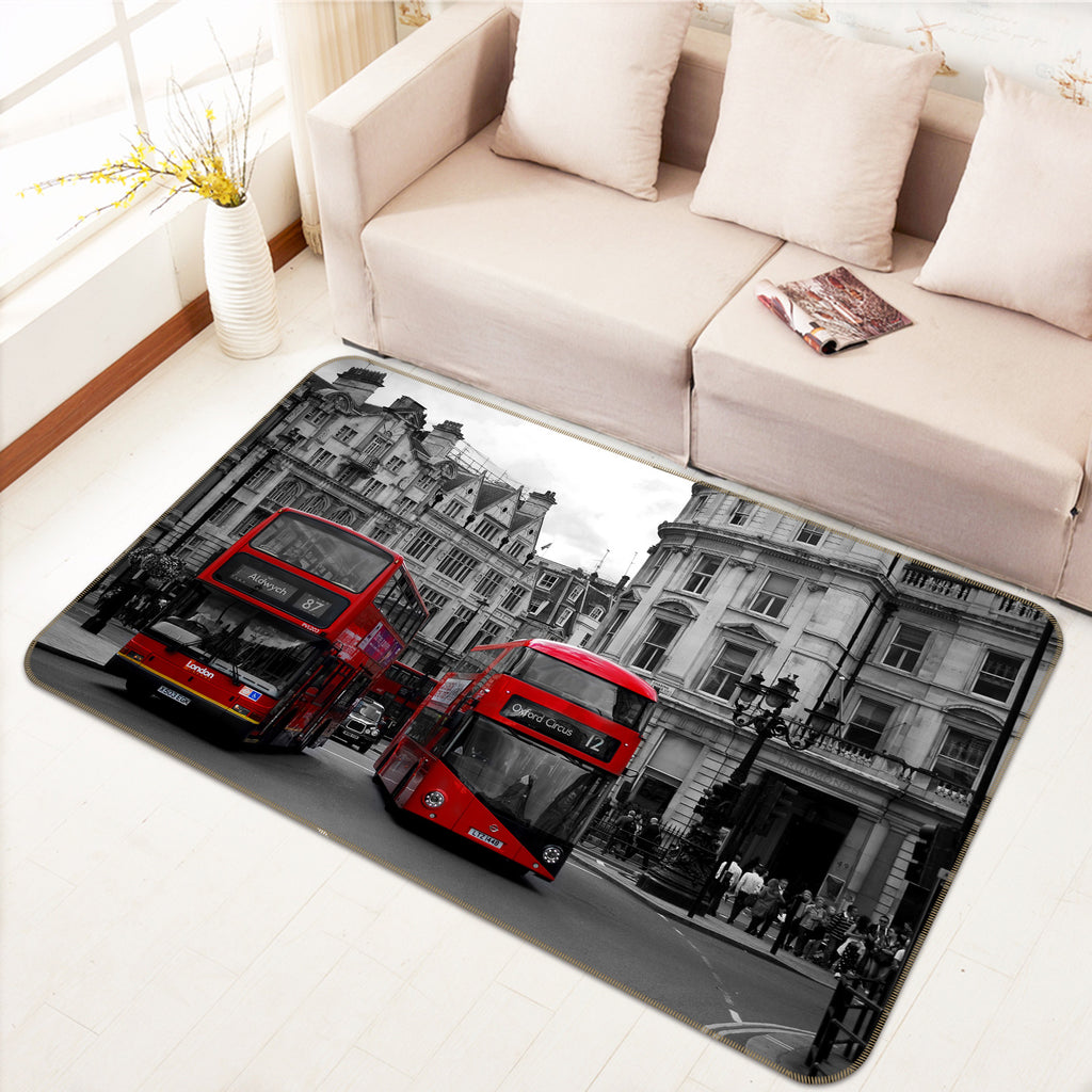 3D Building Red Bus 68113 Vehicle Non Slip Rug Mat Sinsin