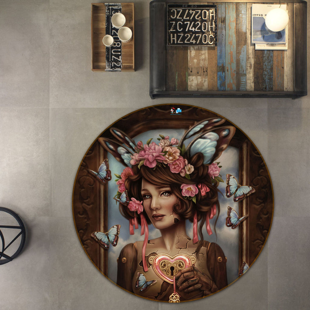 3D Butterfly Woman 8918 Brigid Ashwood Rug Round Non Slip Rug Mat Amy