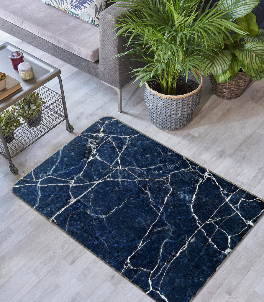 3D Dark Blue Marble Pattern 25219 Non Slip Rug Mat
