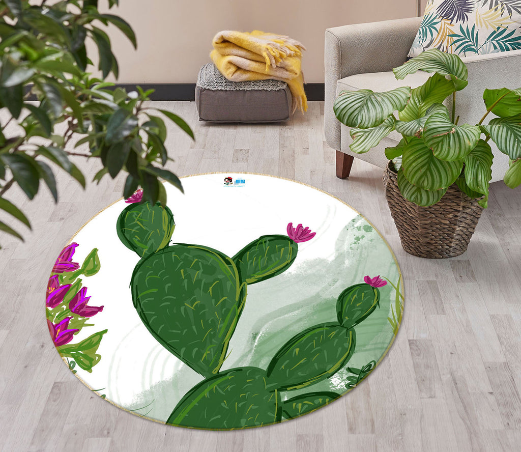 3D Green Cactus 8236 Jacqueline Reynoso Rug Round Non Slip Rug Mat Amy
