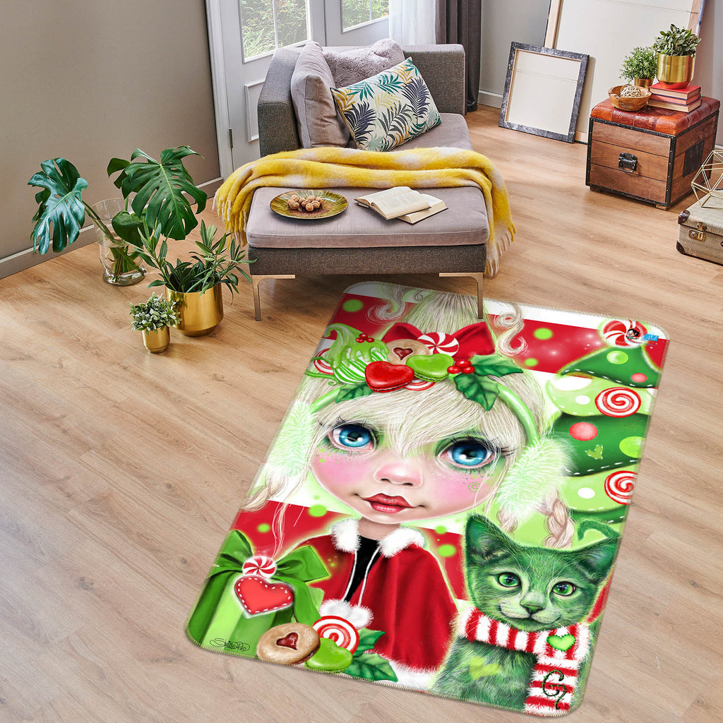 3D Green Cat Girl 8532 Sheena Pike Rug Non Slip Rug Mat Amy
