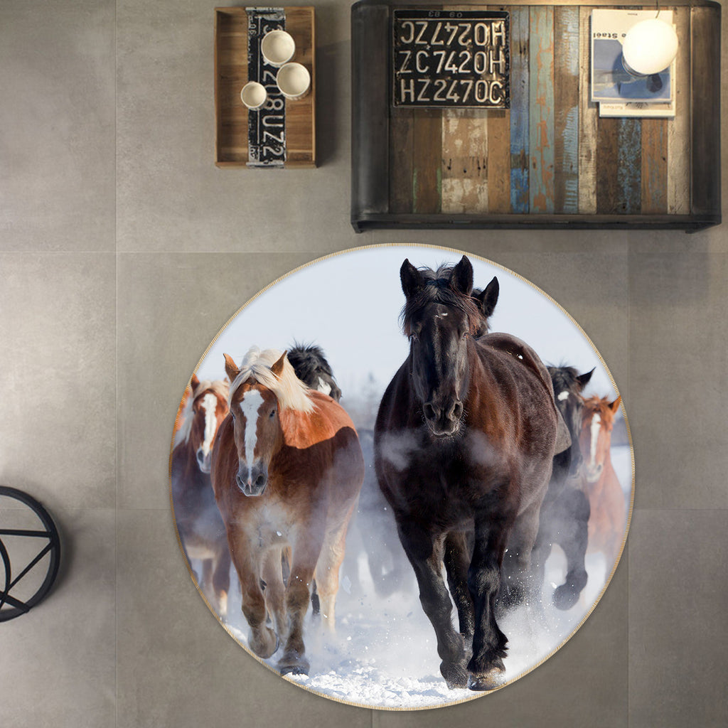 3D Group Of Horses 38036 Animal Round Non Slip Rug Mat Sinsin