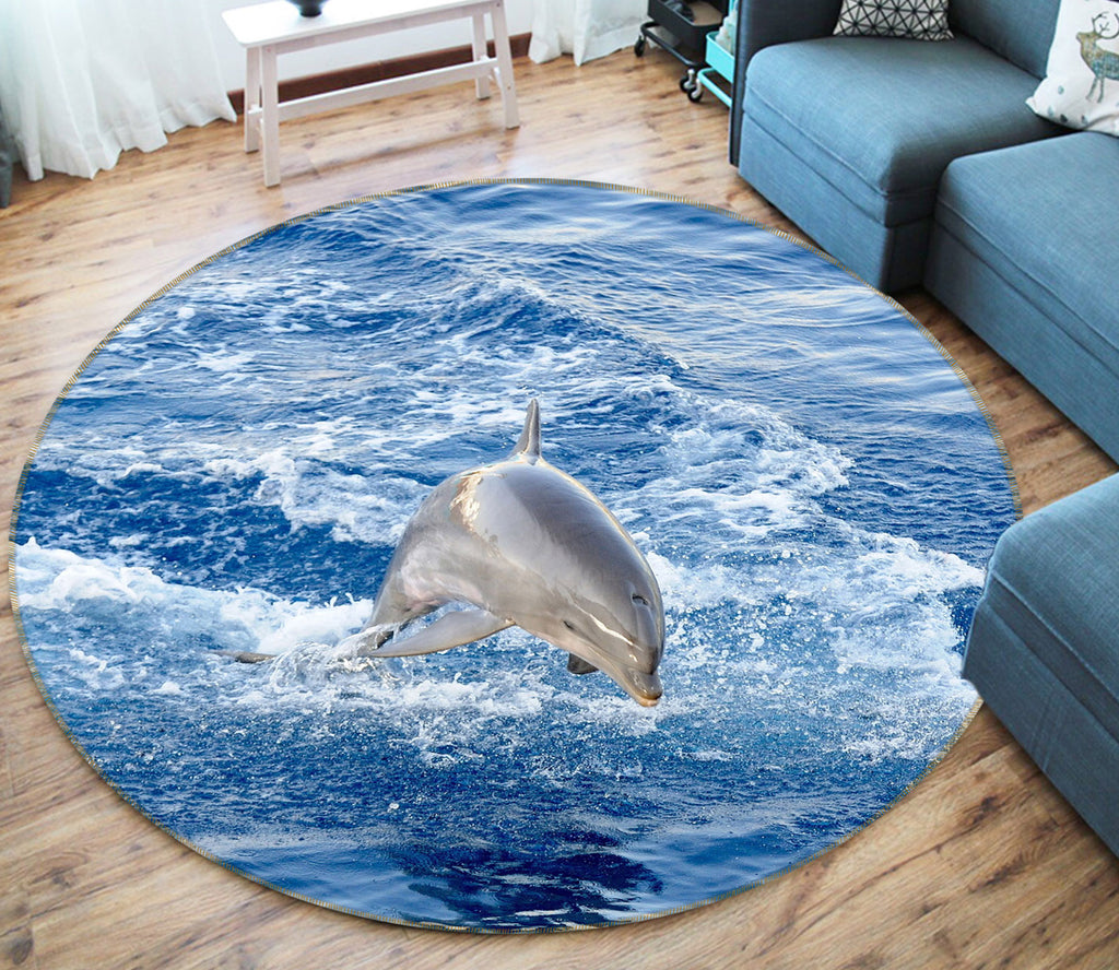 3D Jump Dolphin Surge 38019 Animal Round Non Slip Rug Mat Sinsin