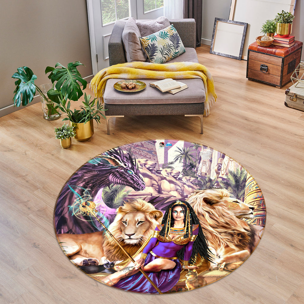 3D Lion Queen 8383 Ruth Thompson Rug Round Non Slip Rug Mat Amy