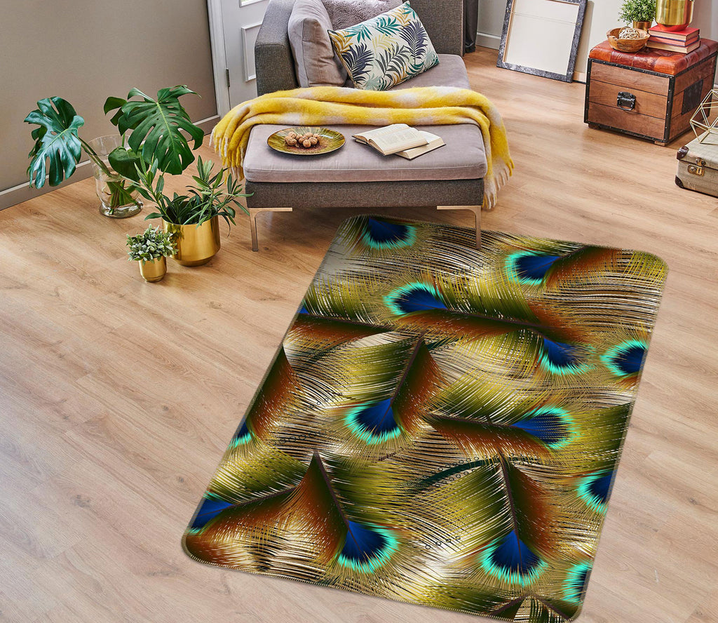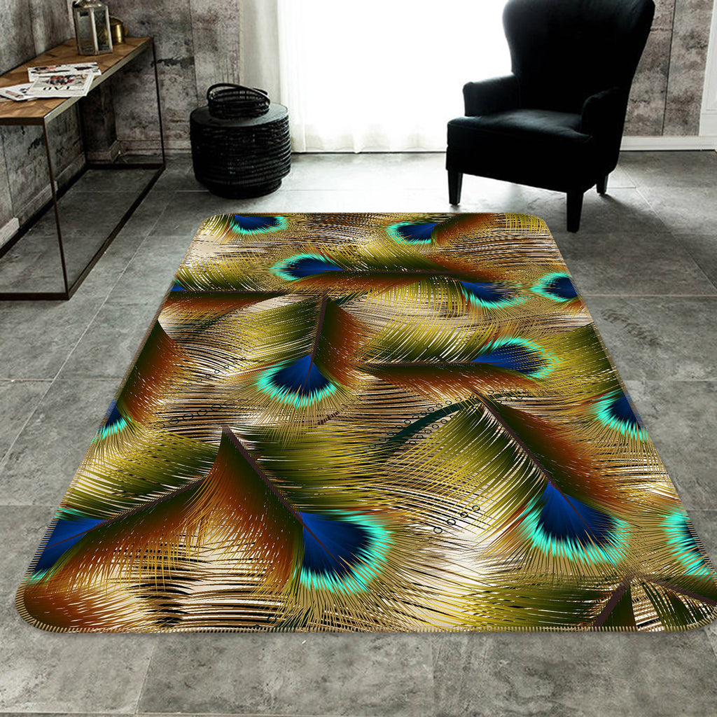 3D Peacock Feather 27066 Non Slip Rug Mat