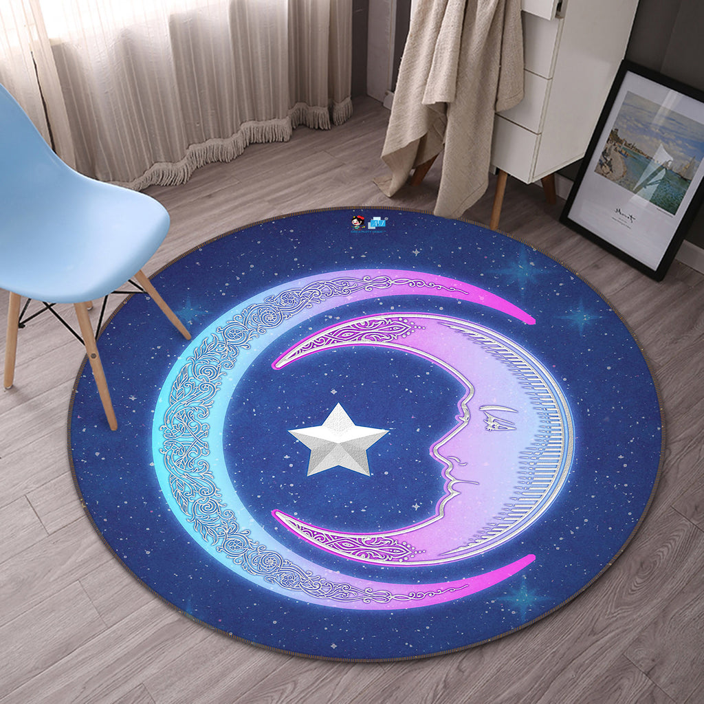 3D Pink Moon Stars 8888 Brigid Ashwood Rug Round Non Slip Rug Mat Amy