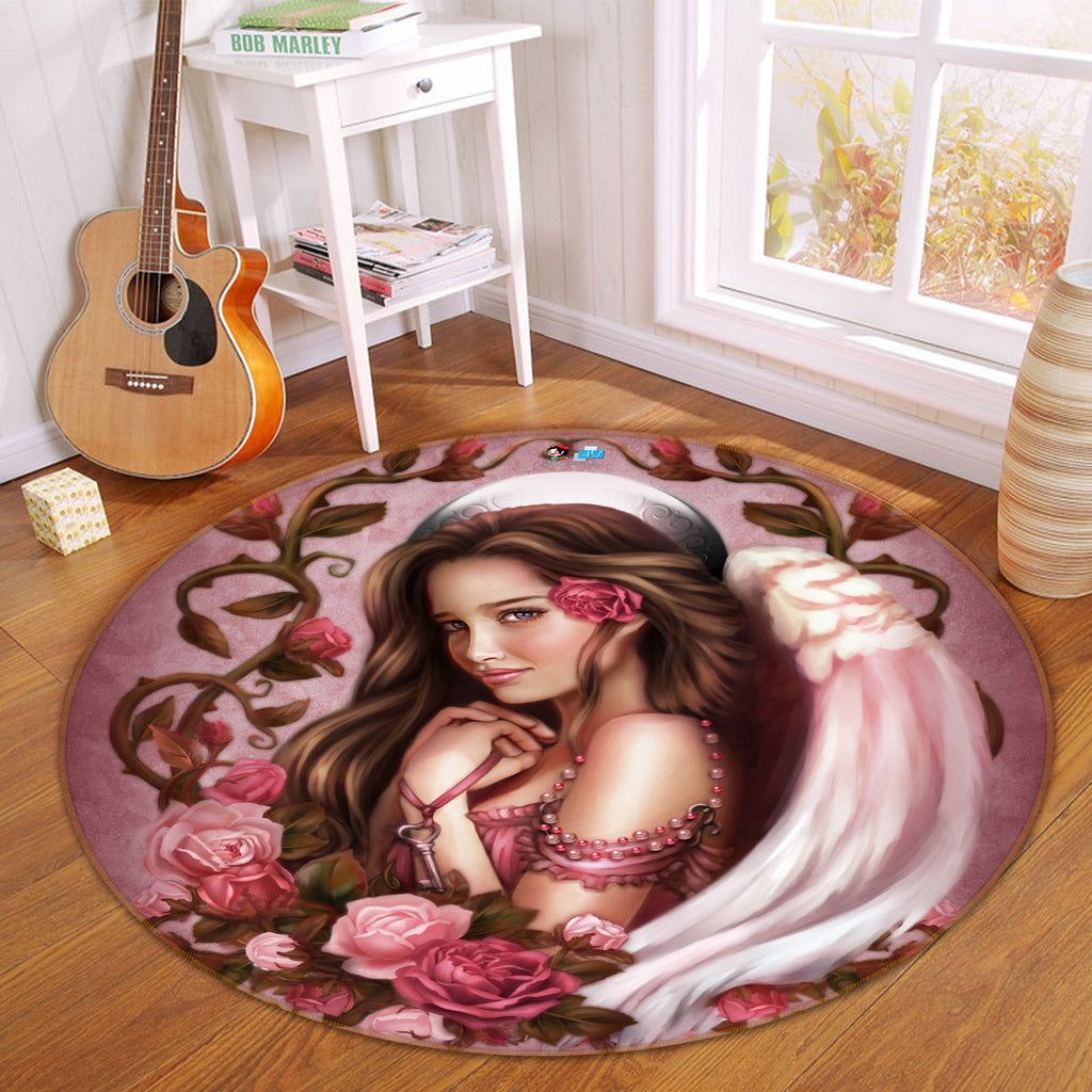 3D Pink Rose Woman 8904 Brigid Ashwood Rug Round Non Slip Rug Mat Amy