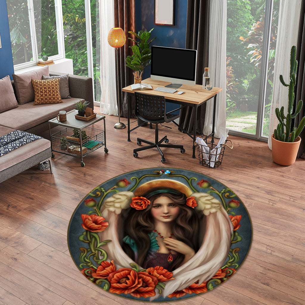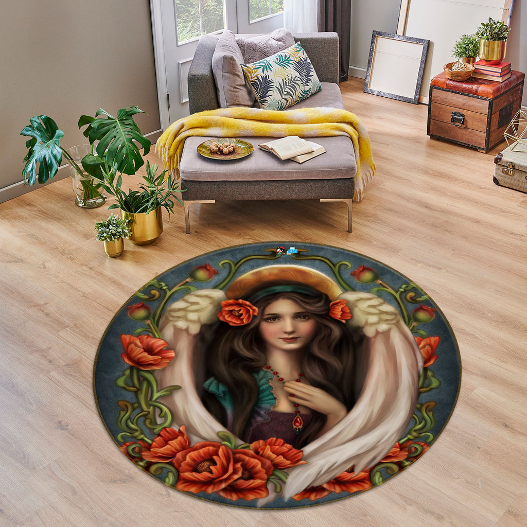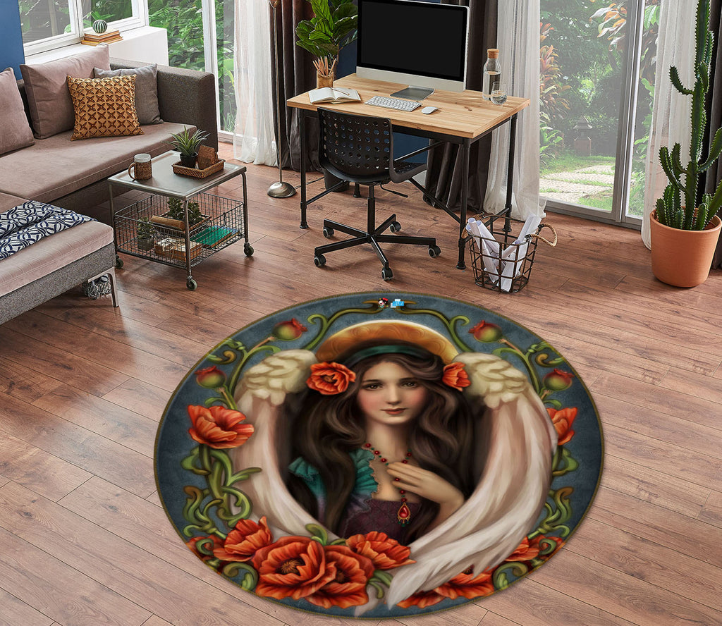 3D Red Flower Woman 8905 Brigid Ashwood Rug Round Non Slip Rug Mat Amy
