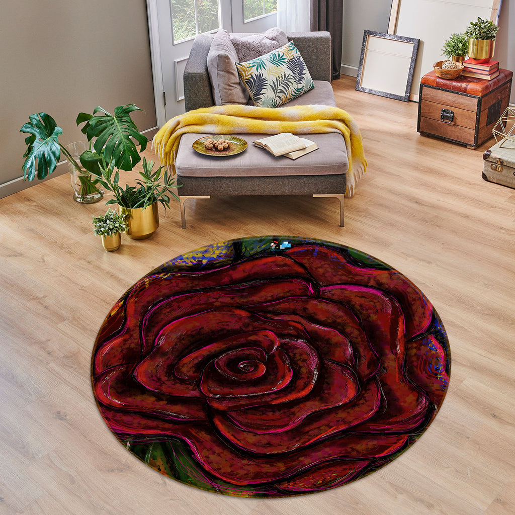 Introducing our stunning round carpet featuring a vibrant red rose design, perfect for adding a touch of romance and elegance to any room. Our carpet is made with high-quality materials and is designed to be durable and easy to clean, ensuring it will last for years to come. The circular shape of the carpet is unique and eye-catching, adding a touch of visual interest to any space. The red rose design is timeless and versatile, making it the perfect addition to any room in your home. Our carpet is available in a variety of sizes to fit your needs. Shop now and add a touch of romance and elegance to your home with our stunning red rose round carpet.