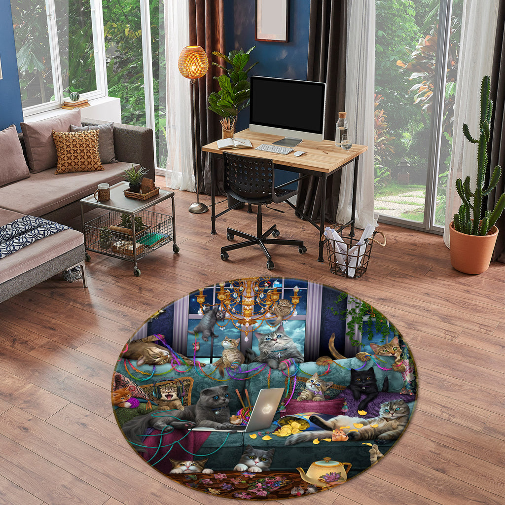 3D Sofa Cat 8874 Brigid Ashwood Rug Round Non Slip Rug Mat Amy