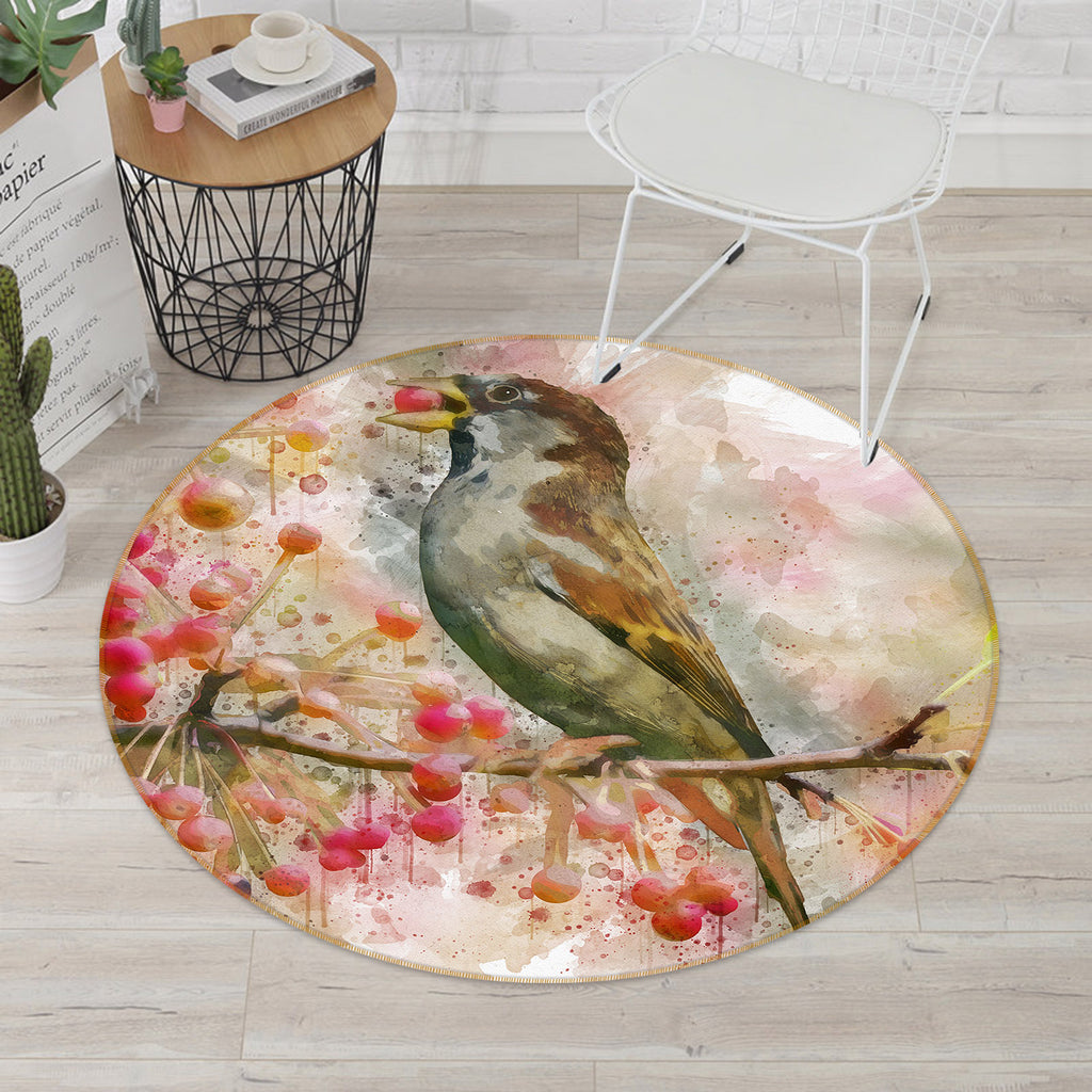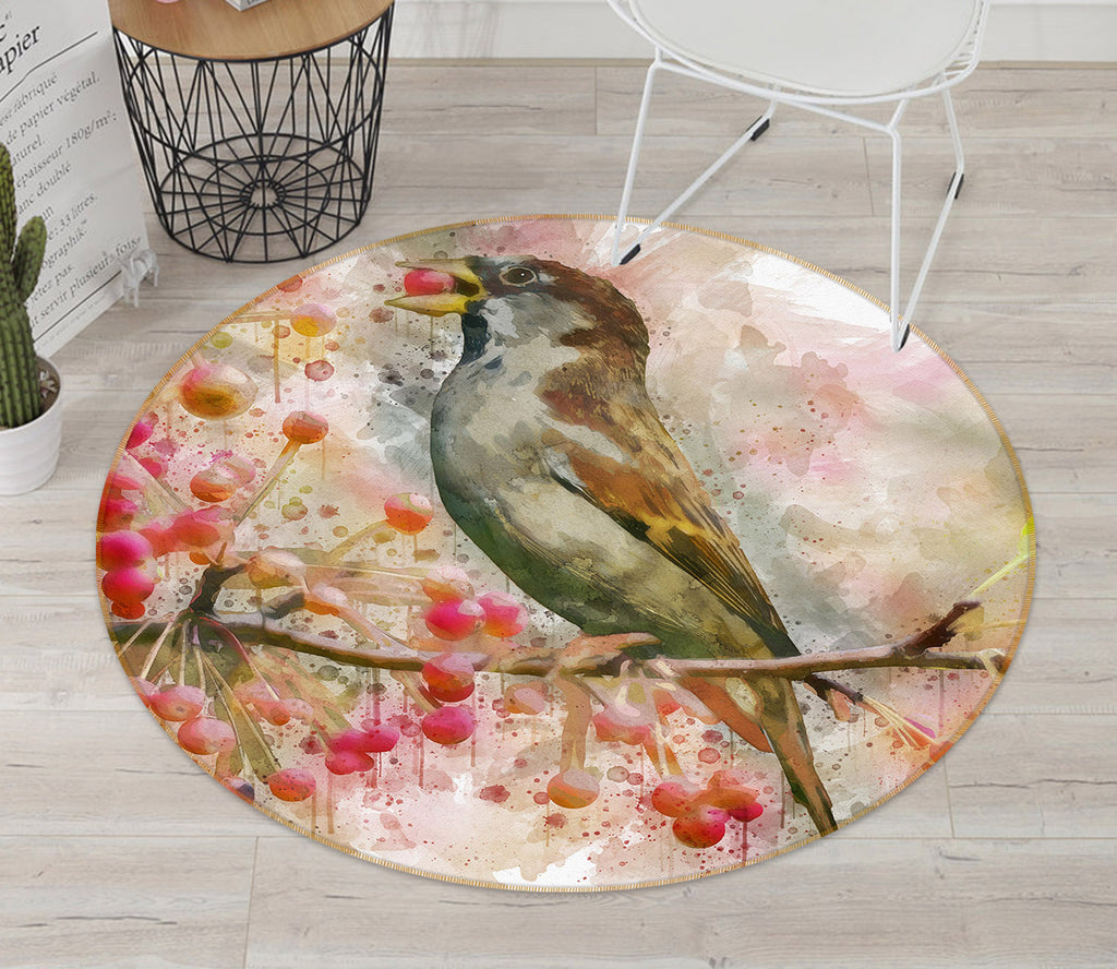 3D Sparrow Branch 38032 Animal Round Non Slip Rug Mat Sinsin