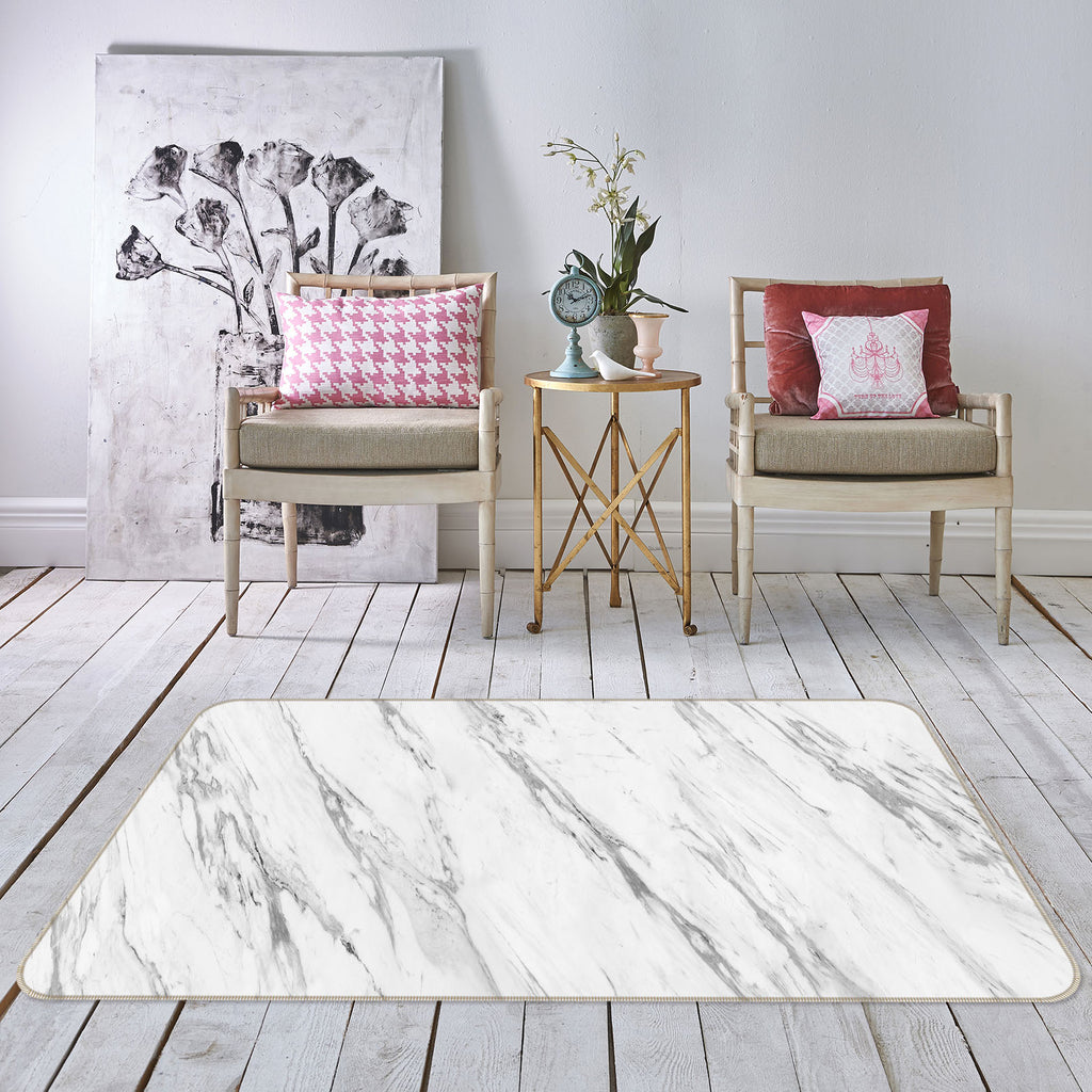 3D White Marble Pattern 27115 Non Slip Rug Mat