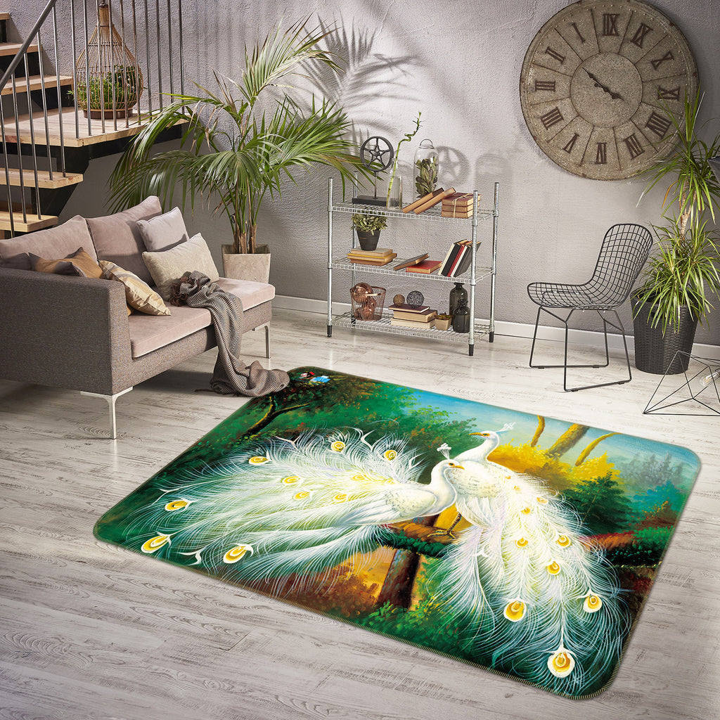 3D White Peacock 3068 Rug Non Slip Rug Mat Amy