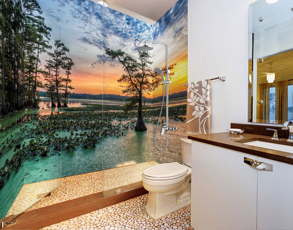 3D Lake Sunset 71 Bathroom Wallpaper