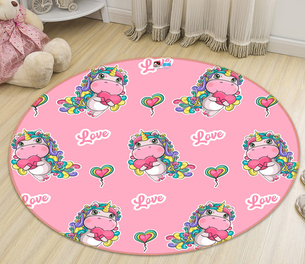 3D Pink Cartoon Unicorn 81075 Round Non Slip Rug Mat