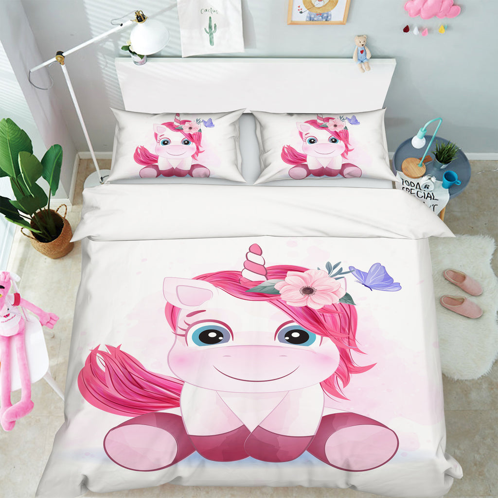 3D Pink Unicorn 58226 Bed Pillowcases Quilt
