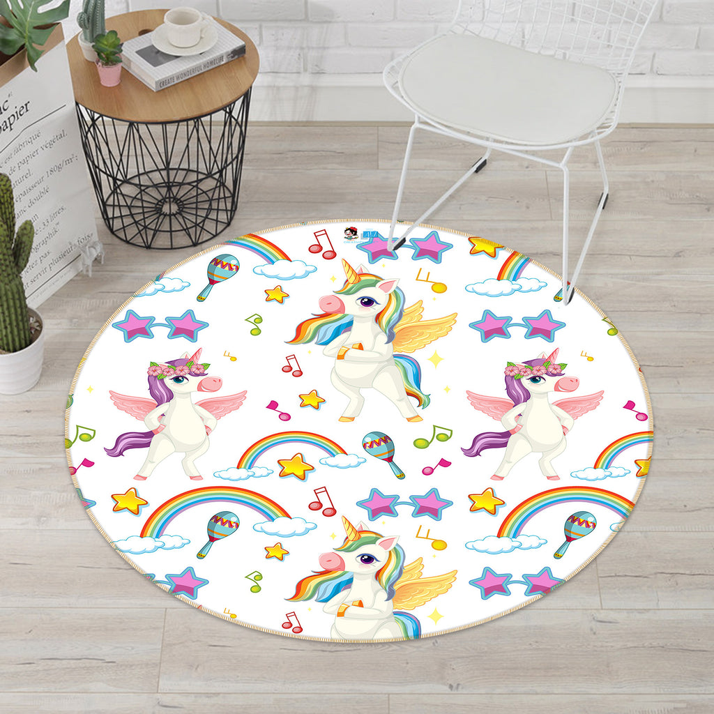 3D Rainbow Unicorn 81029 Round Non Slip Rug Mat Sinsin