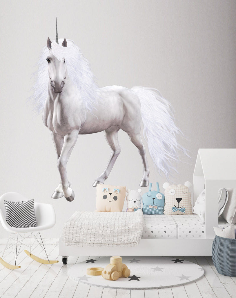 3D White Horse Unicorn 080 Animals Wall Stickers