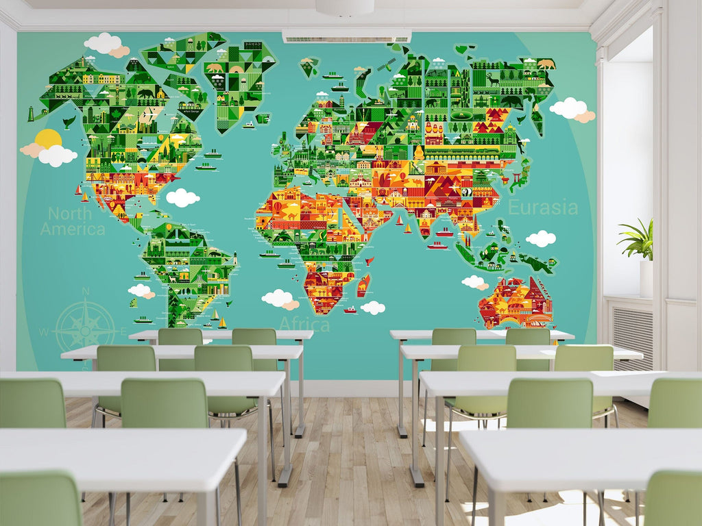3D Abstract Art 2060 World Map Wall Murals Dai