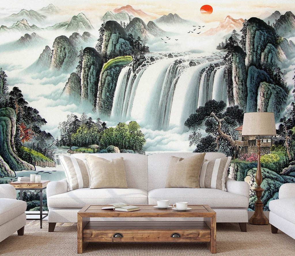 3D Alpine Waterfall 1449 Wall Murals Dai
