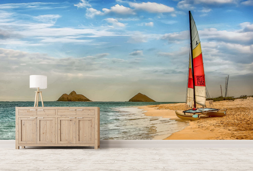 3D Beach Sailboat 9180 Alius Herb Wall Mural Wall Murals Sinsin