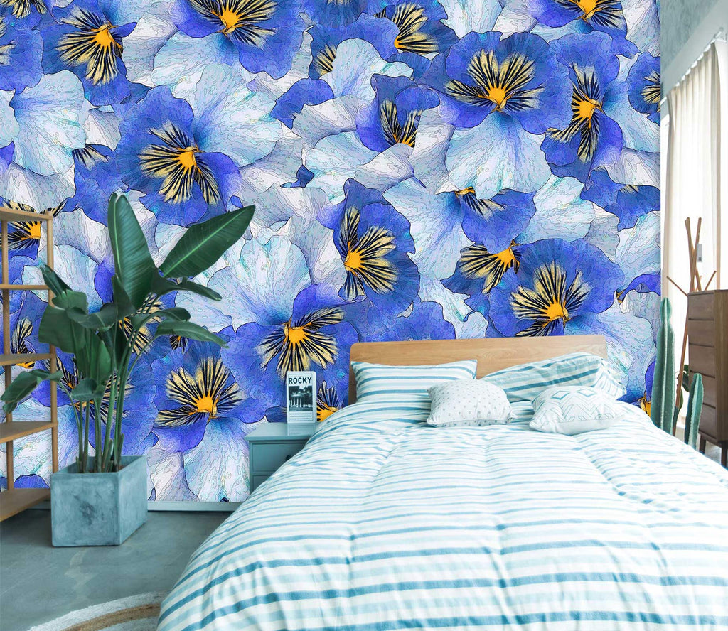 3D Blue Flowers Pattern 9118 Alius Herb Wall Mural Wall Murals Sinsin