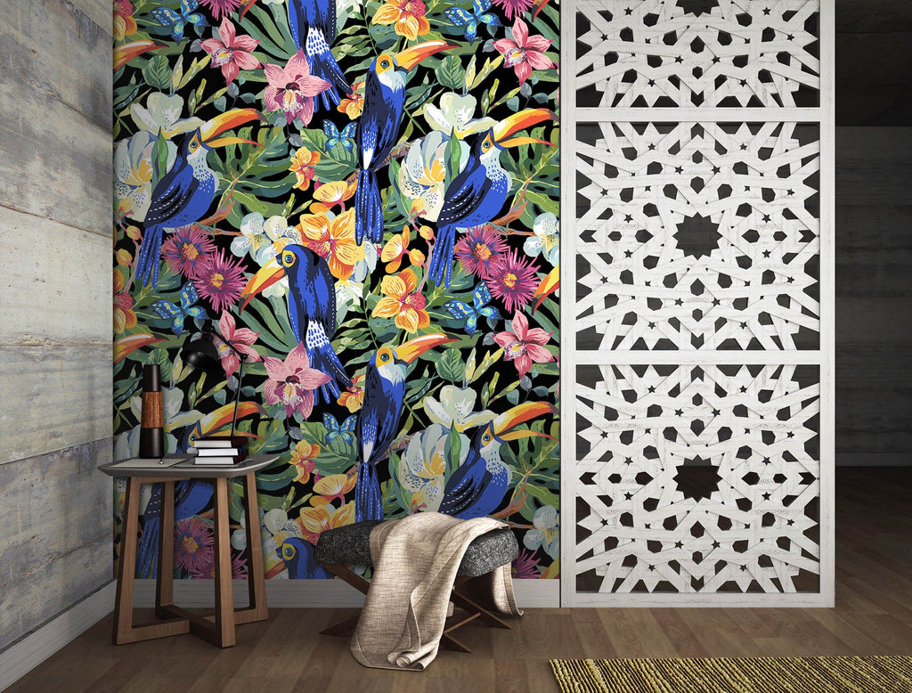 3D Blue Toucan Flower 53 Wall Murals Zoe
