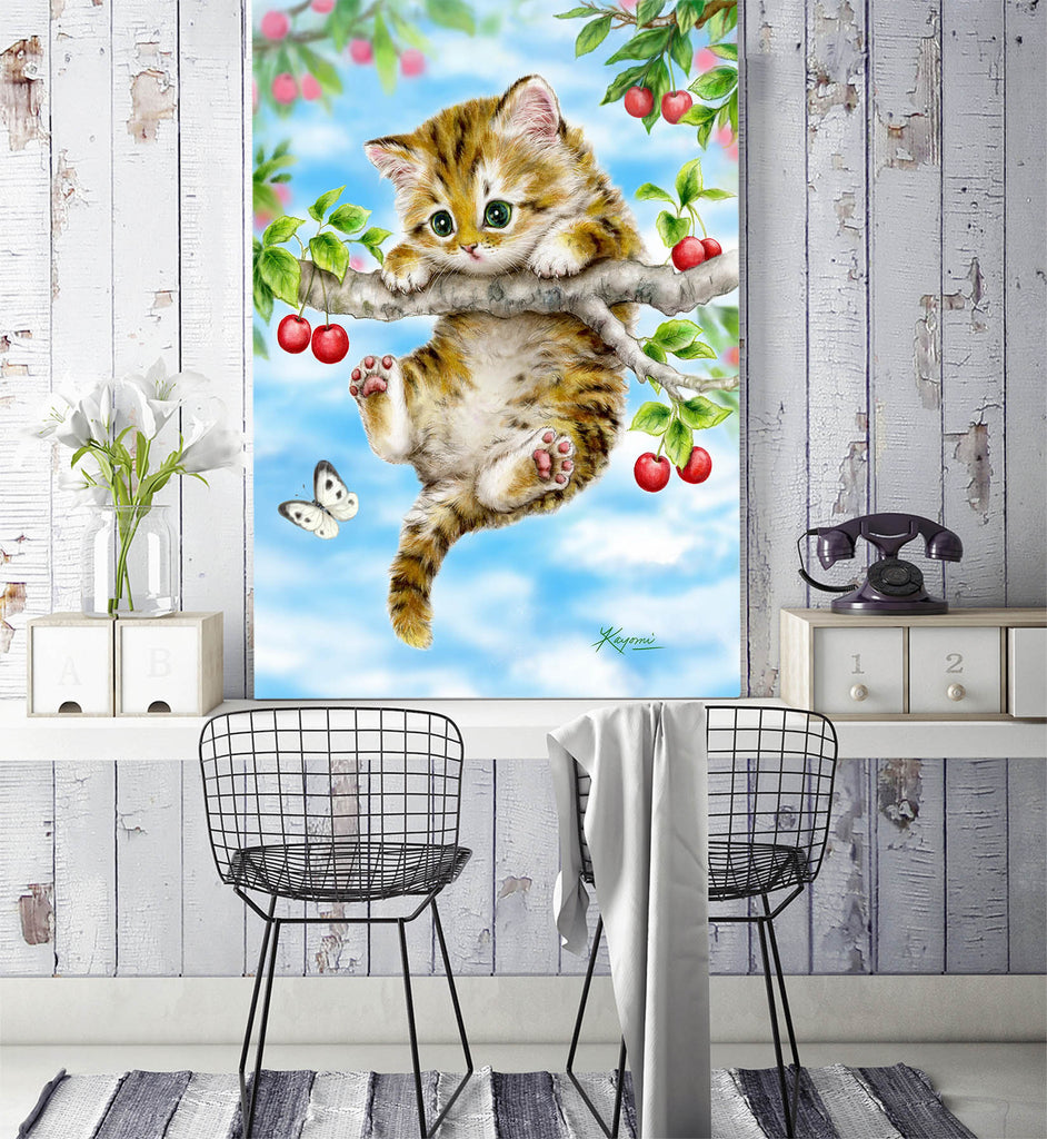 3D Cherry Cat Butterfly 5556 Kayomi Harai Wall Mural Wall Murals Amy