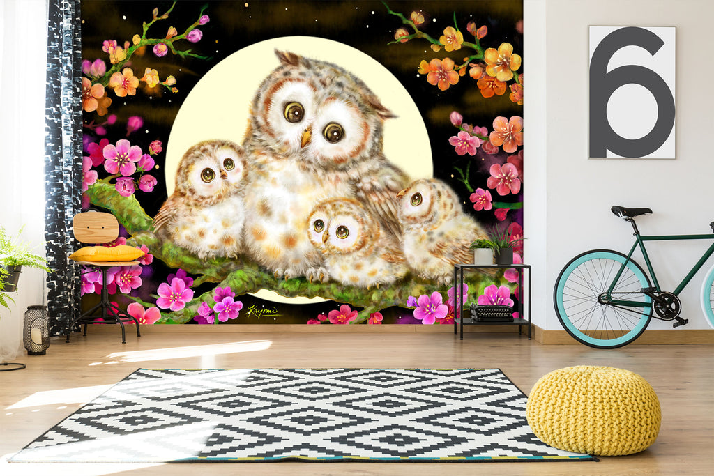 3D Cute Owl Moon 5529 Kayomi Harai Wall Mural Wall Murals Amy
