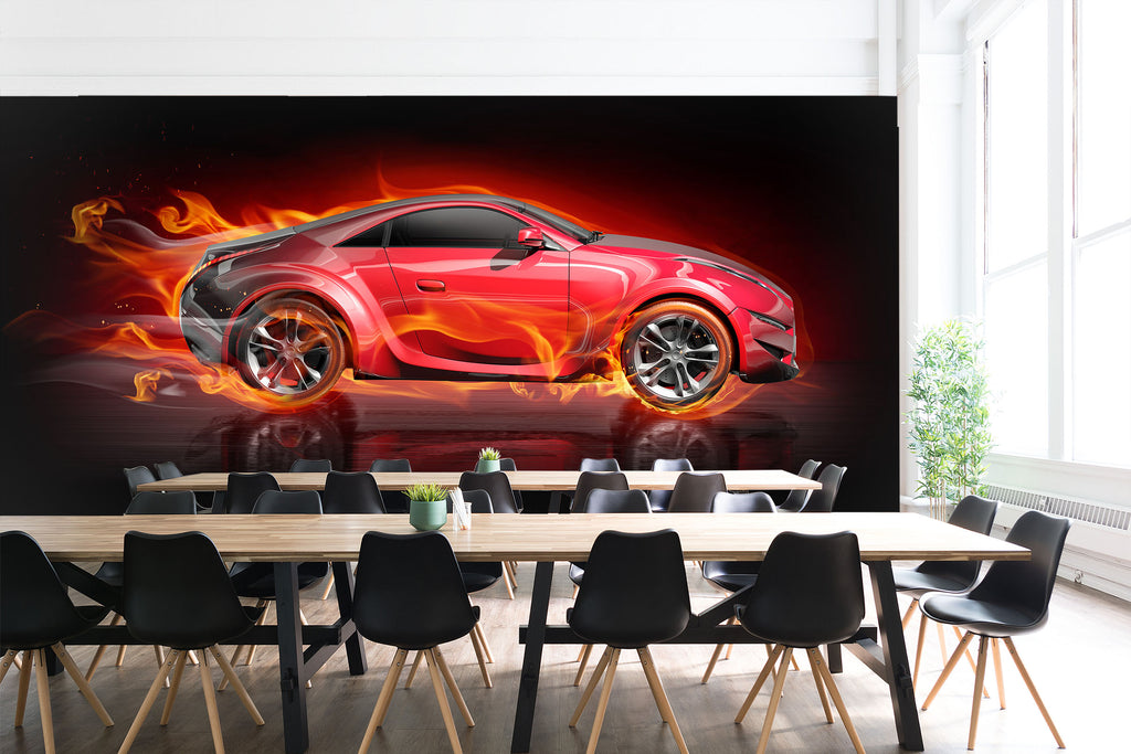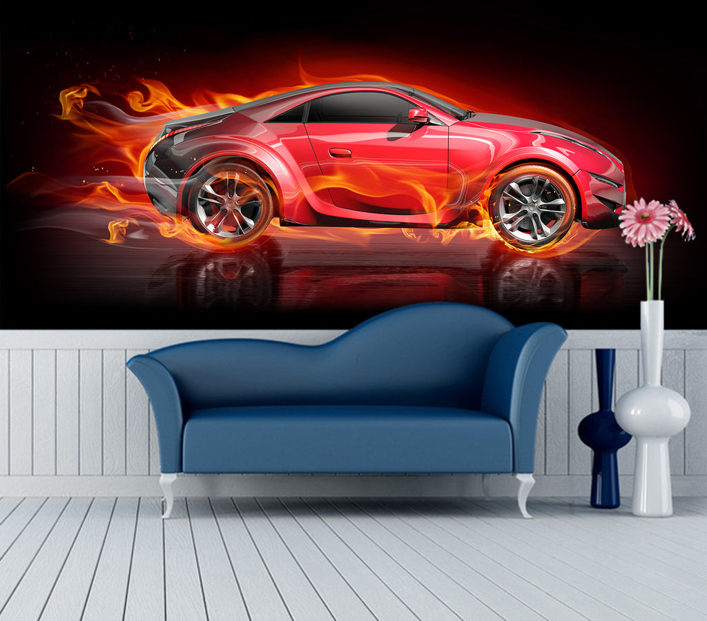 3D Fire Red Car 298 Vehicle Wall Murals